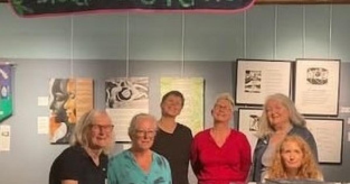 The group, including Jackie Biggs, Bean Sawyer, Emma Baines, Jean Riley, Christian Donovan, and Jane Campbell, have been meeting for six months to workshop their poems and plan the exhibition.