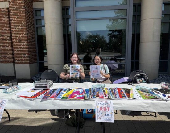 Ainsley Vogel (left) and Cindy An (right) hosted the 2D Charity Art Sale on Tuesday. Credit: Courtesy of Cindy An The arts community